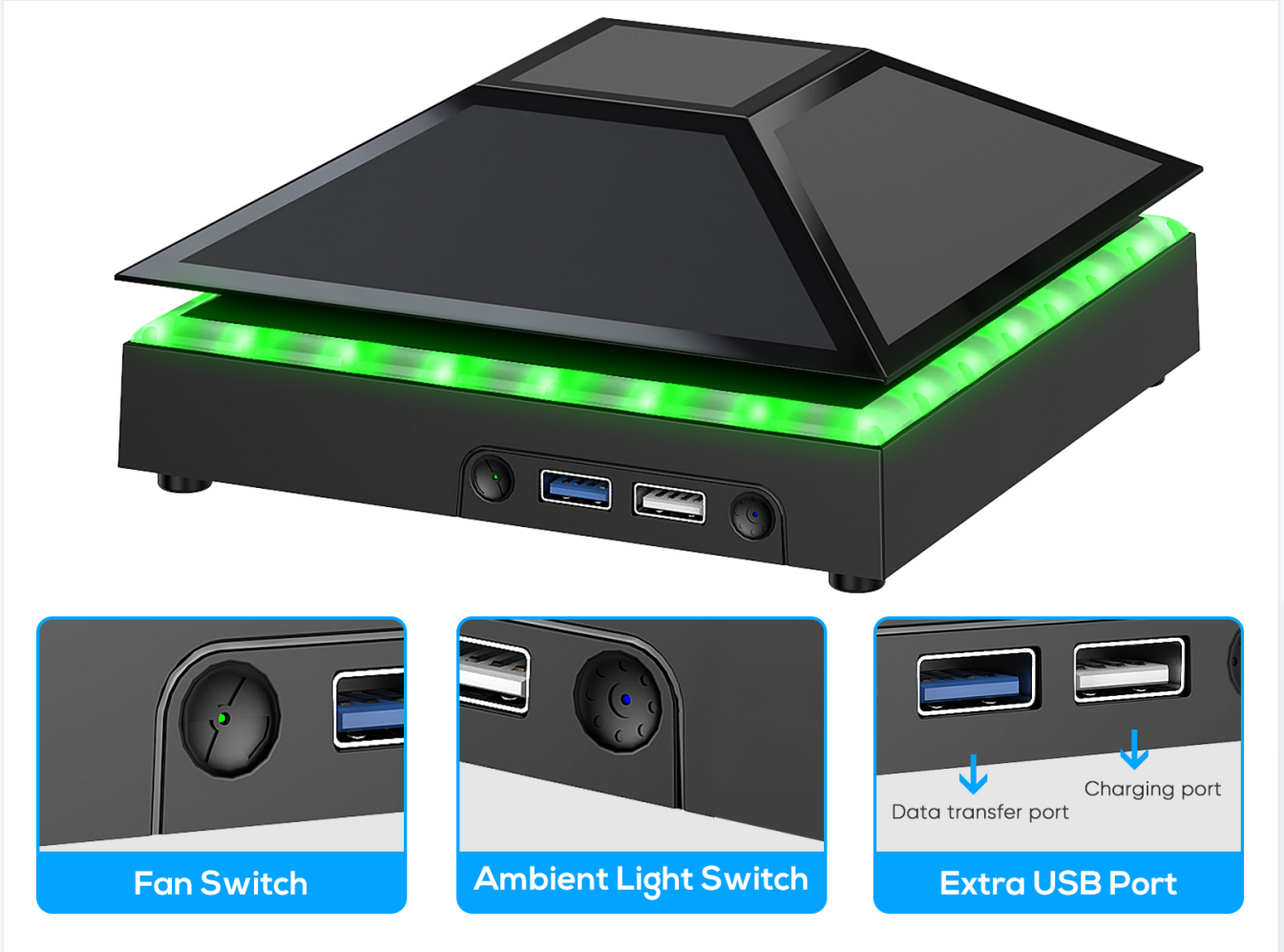I have my XBX in my office which is built in an insulated outdoor shed. I do have AC in there, but it can still get very hot so I was concerned about cooling my Xbox on hot days. This stand is the perfect solution. There are cool LED RGB lights around the bottom as well that you can turn on or off, and also buttons to adjust the fan speed. A perfect solution for storage and cooling all in one place!