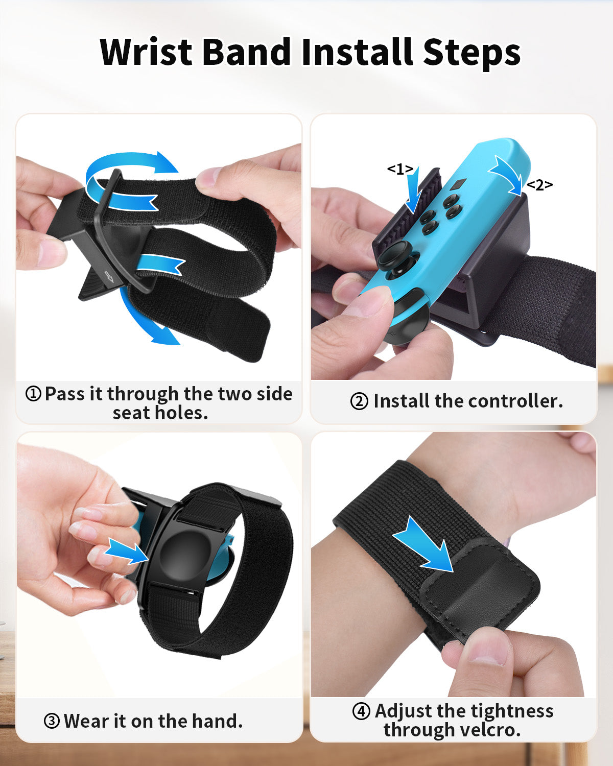 - Easy to Install and Remove — Only 4 simple steps are needed to complete the installation: 1. Install wristband 2. Install Controller 3. Wearing it on the hand 4. Adjust the tightness. The specific operation can be seen in the pictures and videos on the detailed information page