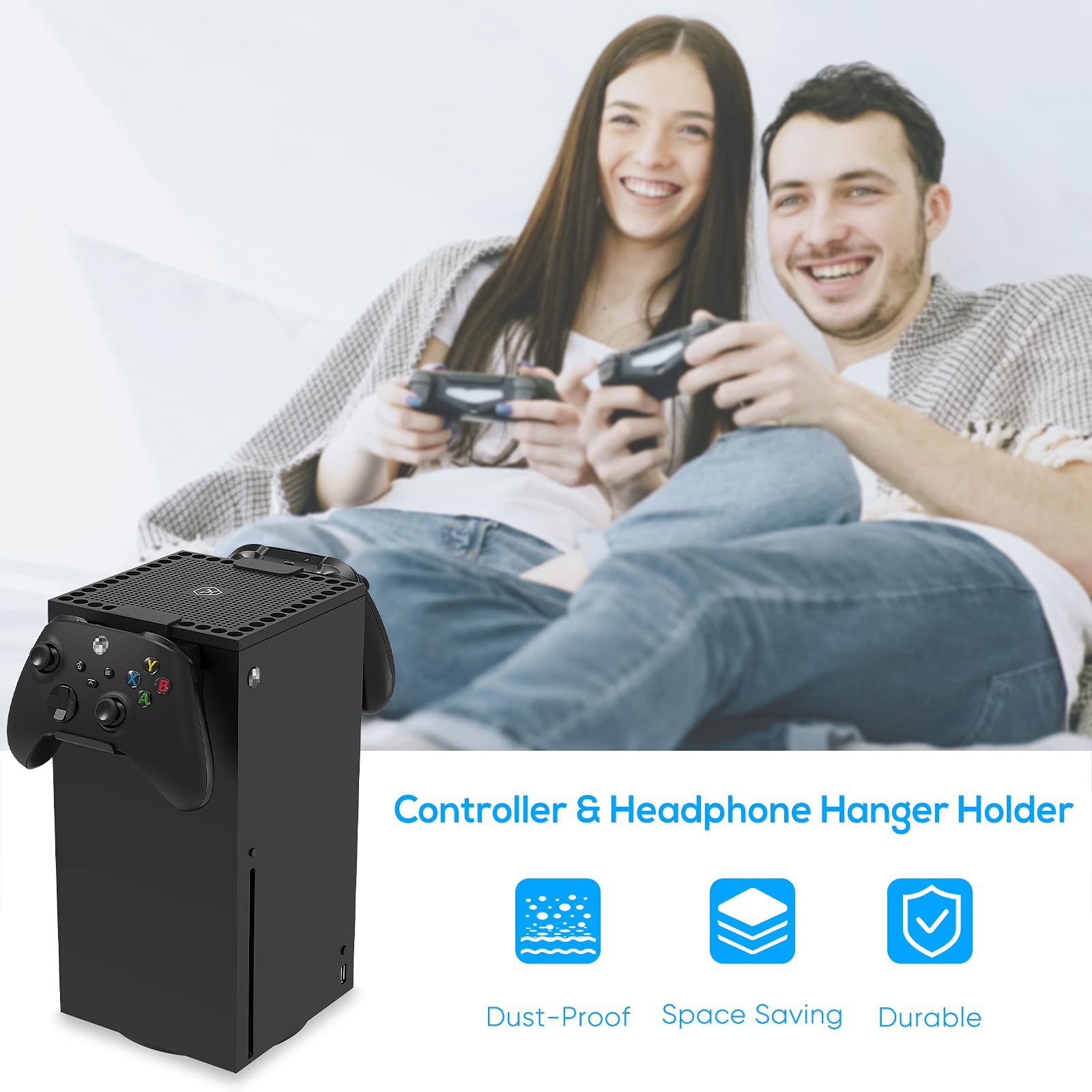 Multi-Function Controller Vented: You can put for Xbox Series X controller and gaming headsets on the stand.