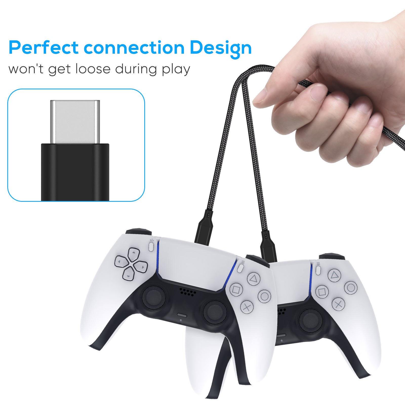 SAFE AND FAST CHARGING: Built-in short-circuit and overload protection, provide stable and safe charging for you. PTC(internal power protection) keeps for PS5 and XSX controller safe, avoids overrunning or overcharging when connected to it power. The cable also support transfer data.
