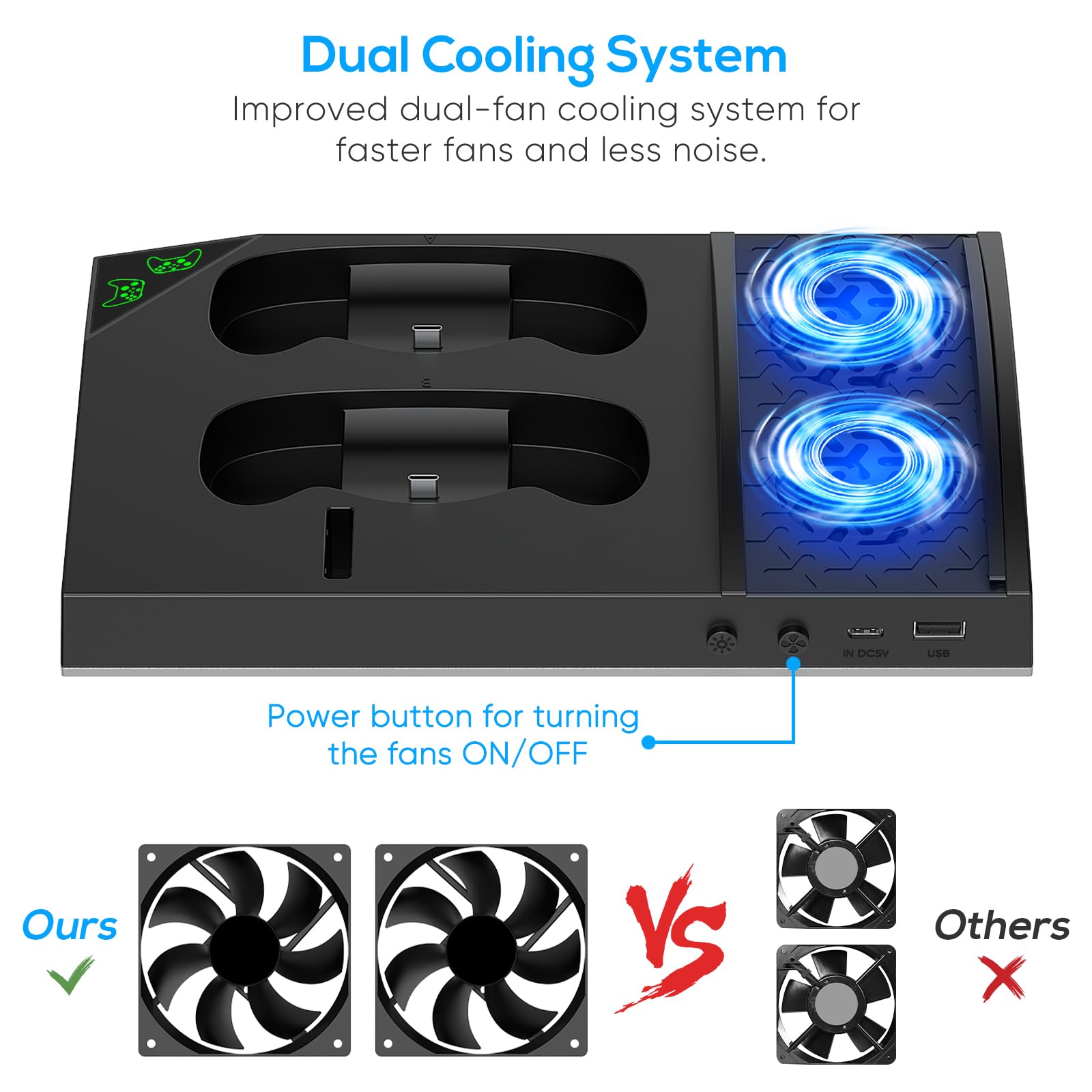 【Dual Cooling Fan System for Console】: Designed with the dual cooling fan at the bottom can accelerate the air circulation inside the console system to cool it better. Have power button for turning the fans ON/OFF, The button can control the fan operation at any time. The metal base also can effectively cool for Xbox Series S console, which improve the operational life span. Anti-slip rubber bottom design will keep the vertical stand tightly and stable.